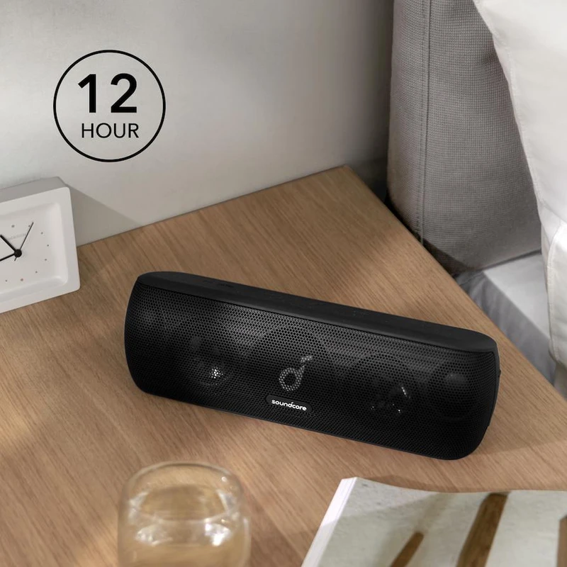 یکی ازمحصولات برند ساندکور از کمپانی انکر اسپیکر بلوتوثی مدل Motion plusاست این اسپیکرسازگار با بلوتوث ورژن 5 است و میتوانید آن را به تمام دستگاههایی که مجهز به فناوری بلوتوث هستند متصل کنید. شما با تکنولوژی DSP (پردازنده سیگنال دیجیتال) به کار رفته در این اسپیکر یک صدای واقعی و با وضوح بالا با خروجی 30 وات را تجربه میکنید. مجهز به صدای خیره کننده Hi-Res است که با تولید Qualcomm aptX ™ برای تولید مجدد موسیقی بدون ضرر هنگام پخش از طریق بلوتوث ، بیشتر تقویت می شود. این اسپیکر ضد آب است و گواهی ipx7 دارد که به راحتی میتوانید زیر باران موسیقی لذت بخشی را داشته باشید. این اسپیکر دارای یک میکروفون داخلی است که به شما این امکان را میدهد تا بعد از اتصال گوشی موبایل از طریق بلوتوث بتوانید به تماسهای دریافتی خود بهراحتی و از طریق این اسپیکر پاسخ دهید. صدای واضح وشفاف آن با توجه به قابل حمل بودن آن بینظیر است.دارای باتری 6700Mah قابل شارژ است .قابلیت جفت شدن دو اسپیکر به طور همزمان به یک دستگاه را داراست ومیتوانید از طیف وسیع تری از صدا بهره مند شوید. برد بلوتوث این اسپیکر 20 متر است . استفاده از کابل AUX و جک 3.5 میلیمتری که بسیار هم رایج است، کمک میکند تا سایر دستگاهها هم بتوانند صدای خود را برای این دستگاه بفرستند .زمان پخش موسیقی این اسپیکر 12 ساعت مداوم و مدت زمان شارژ شدن آن با پورت Type-C ساعت است.