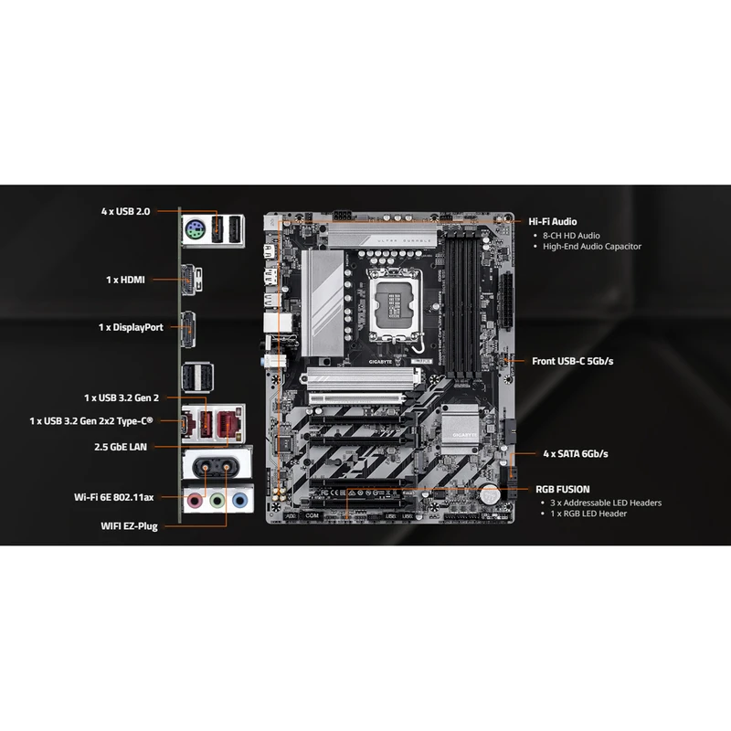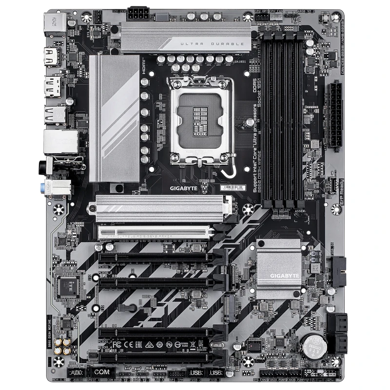 این مادربرد از سوکت LGA1851 پشتیبانی میکند که امکان نصب جدیدترین پردازندههای Intel Core Ultra (Series 2) را فراهم میکند. چیپست Intel B860 تعادلی مناسب بین امکانات کاربردی، عملکرد بالا و مصرف انرژی بهینه ایجاد میکند و نیازهای کاربران گیمینگ، طراحی و حرفهای را برآورده میسازد.