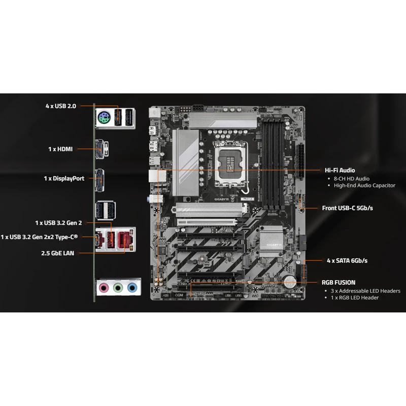 مادربرد گیگابایت مدل B860 DS3H از پورتهای متنوعی برخوردار است که نیازهای مختلف کاربران را پوشش میدهد، از جمله: