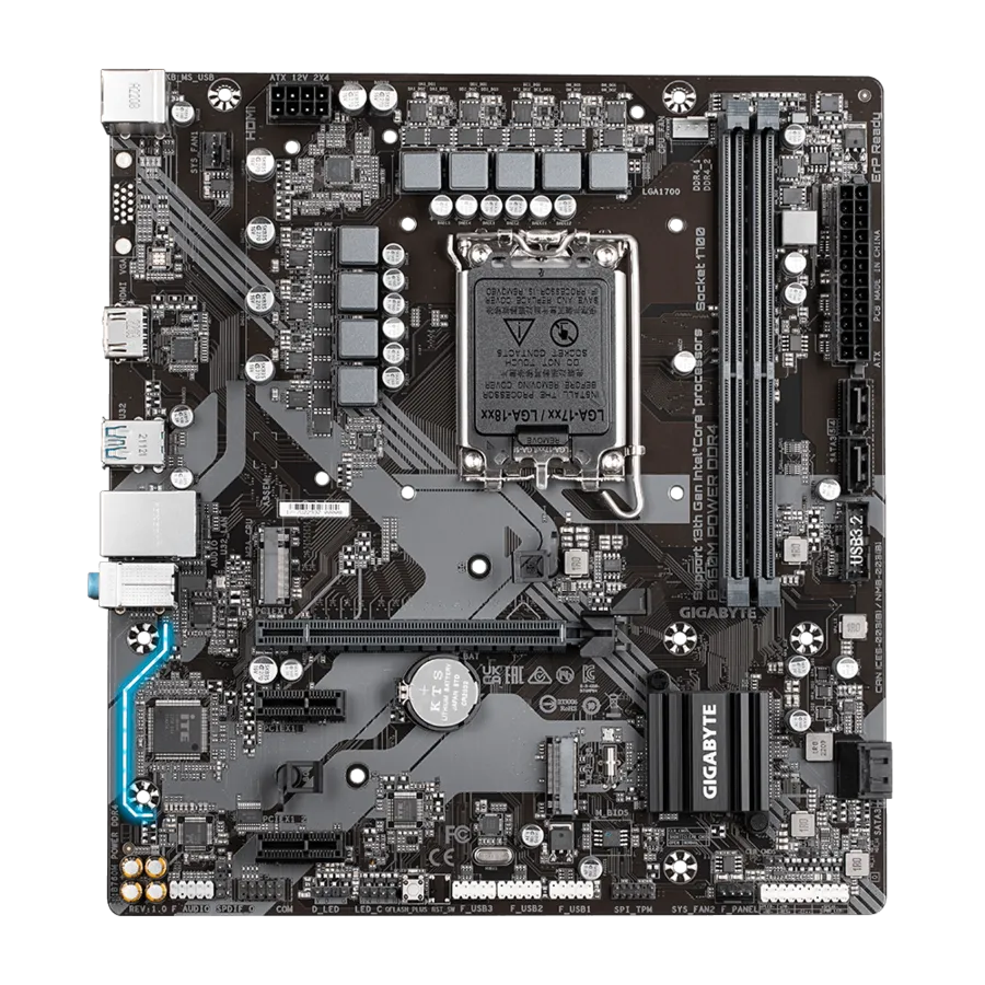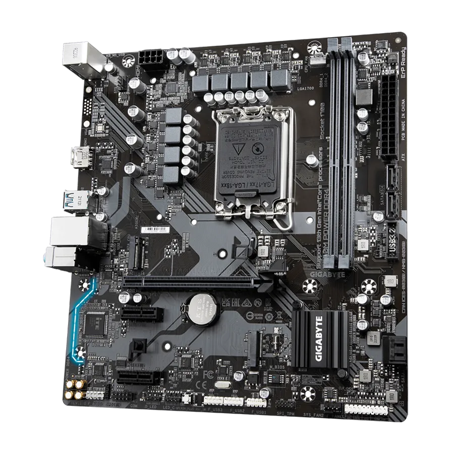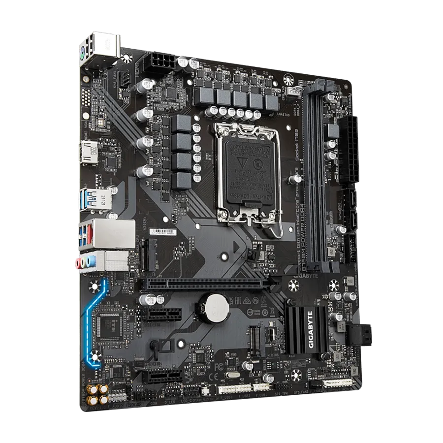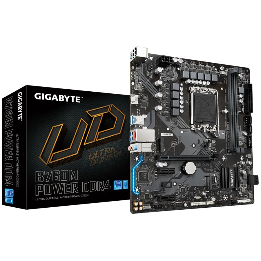 مادربرد Gigabyte B760M POWER DDR4 Rev 1.0 در قالب Micro-ATX طراحی شده و چیپست B760 اینتل را بهکار گرفته است. این مادربرد با سوکت LGA1700 سازگار با پردازندههای نسلهای ۱۲ تا ۱۴ است. طراحی قدرتمند فاز تغذیه ۶+۲+۱ و سیستم خنککننده هوشمند Smart Fan 6 امکان اجرای پایدار و بدون مشکلات حرارتی را فراهم میآورد. همچنین، پشتیبانی از حافظه DDR4 با فرکانس بالا (تا 5333 مگاهرتز) و اسلاتهای PCIe 4.0 (شامل EZ-Latch برای نصب آسان) این مادربرد را برای اجرای گیمینگ یا کاربردهای سنگین ایدهآل میسازد.