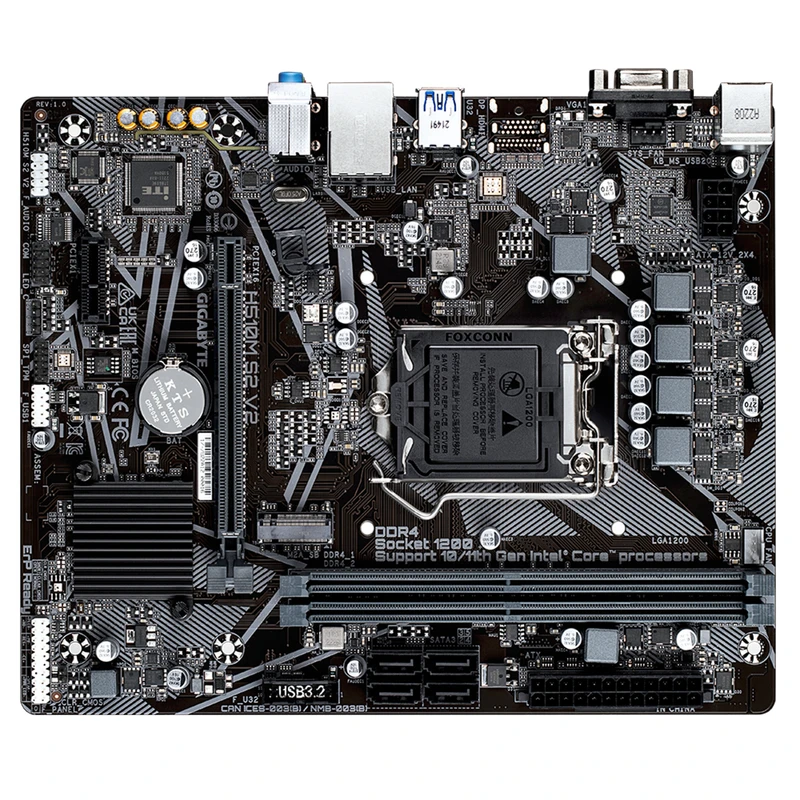 مادربرد گیگابایت مدل H510M S2 V2 rev. 1.0 یک مادربرد اقتصادی و کارآمد از سری 500 اینتل است که برای پردازندههای نسل دهم و یازدهم اینتل طراحی شده است. این مادربرد با فرم فاکتور Micro ATX و چیپست Intel H510، گزینهای مناسب برای سیستمهای خانگی، اداری و گیمینگ سبک محسوب میشود.