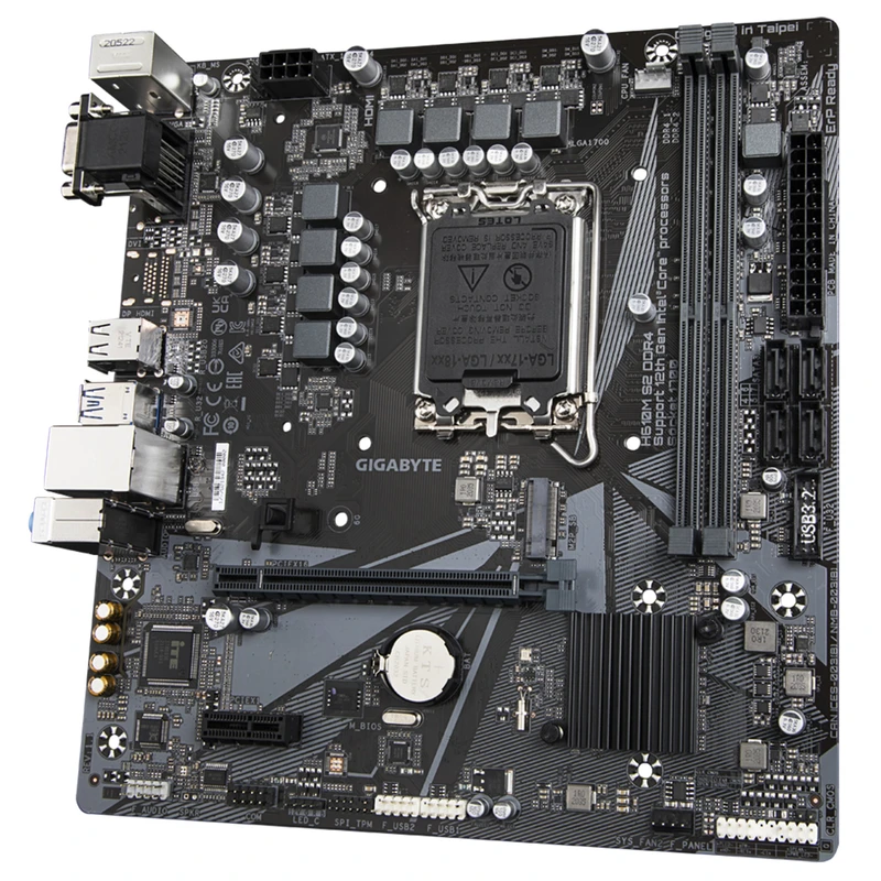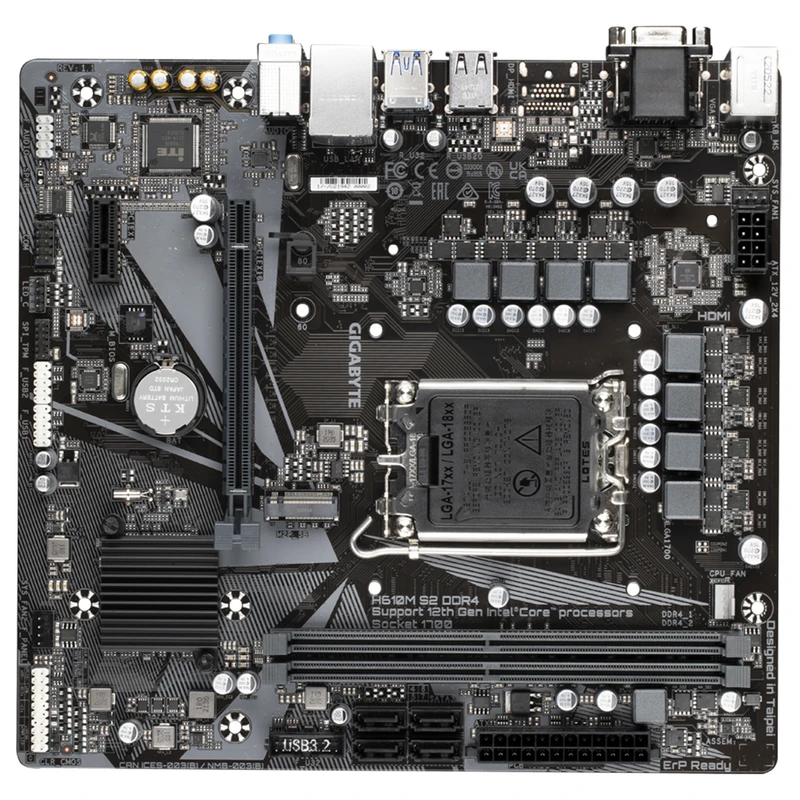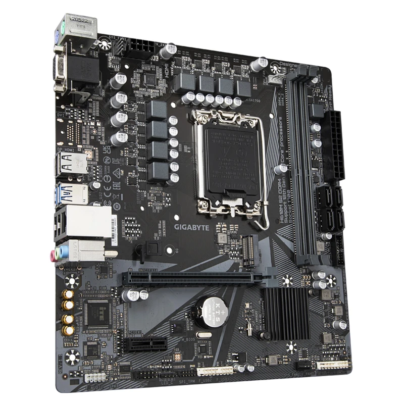مادربرد گیگابایت مدل H610M S2 DDR4 (rev. 1.1/1.3) دارای فرم فاکتور Micro-ATX است که امکان استفاده در انواع کیسهای کوچک و متوسط را فراهم میکند. طراحی مینیمال و ساده این مادربرد باعث شده تمرکز اصلی روی پایداری، دوام و کارایی بالا باشد.
