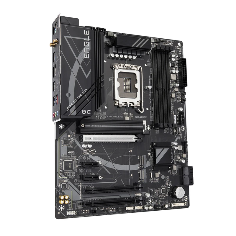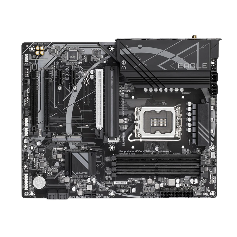 مادربرد گیگابایت مدل Z790 EAGLE AX (rev. 1.x) یک مادربرد ATX با چیپست Intel Z790 است که برای پردازندههای نسل دوازدهم، سیزدهم و چهاردهم اینتل (سوکت LGA 1700) طراحی شده است. این مادربرد با ویژگیهای پیشرفتهای مانند طراحی دیجیتال ۱۲+۱+۱ فازی برای VRM، پشتیبانی از حافظه DDR5 با فرکانس اورکلاک تا ۷۶۰۰ مگاهرتز، و اتصال بیسیم Wi-Fi 6E 802.11ax، عملکرد بالایی را برای سیستمهای گیمینگ و حرفهای فراهم میکند.