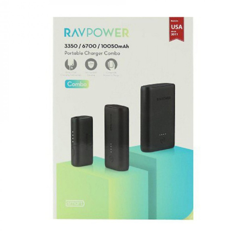شامل سه پاوربانک با ظرفیتهای ۳۳۵۰ میلیآمپر، ۶۷۰۰ میلیآمپر و ۱۰۰۵۰ میلیآمپری
